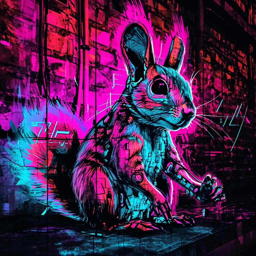The image of the Cyber Squirrel is painted on the wall as a symbol against injustice. The Cyber Squirrel not only brings the redistribution of wealth but also b